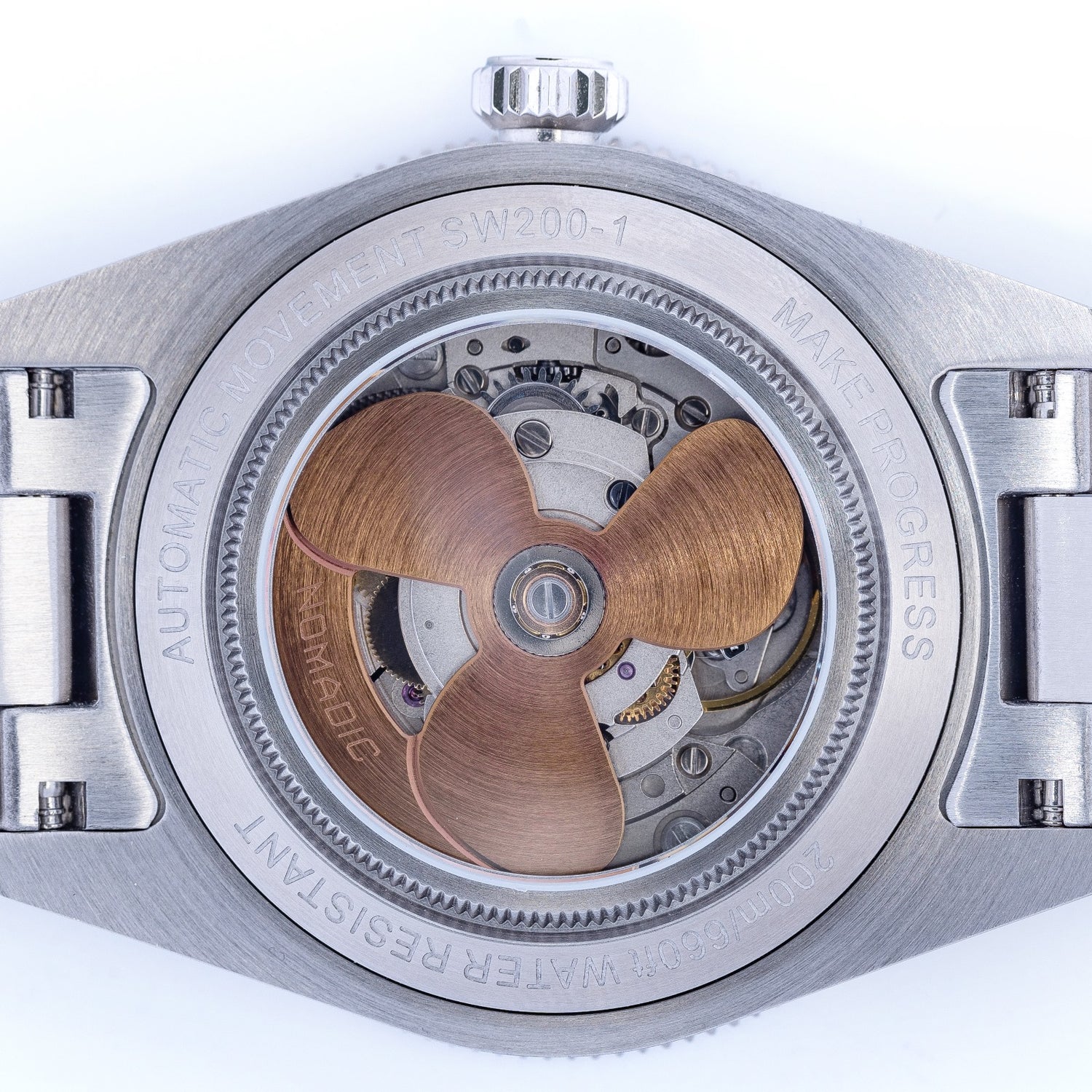 Precision engineered and handbuilt by skilled technicians, every Nomadic watch has a screw-down crown and case back to guarantee saltwater resistance up to 660ft
